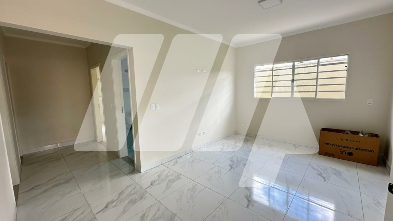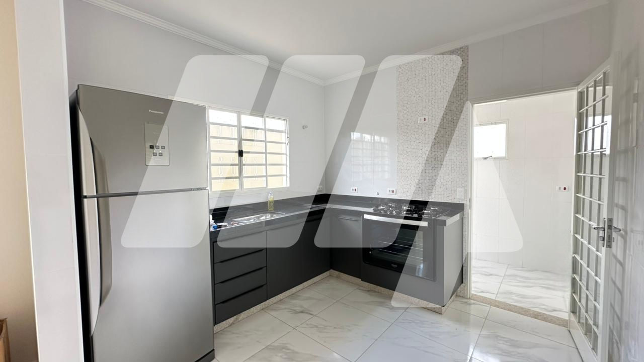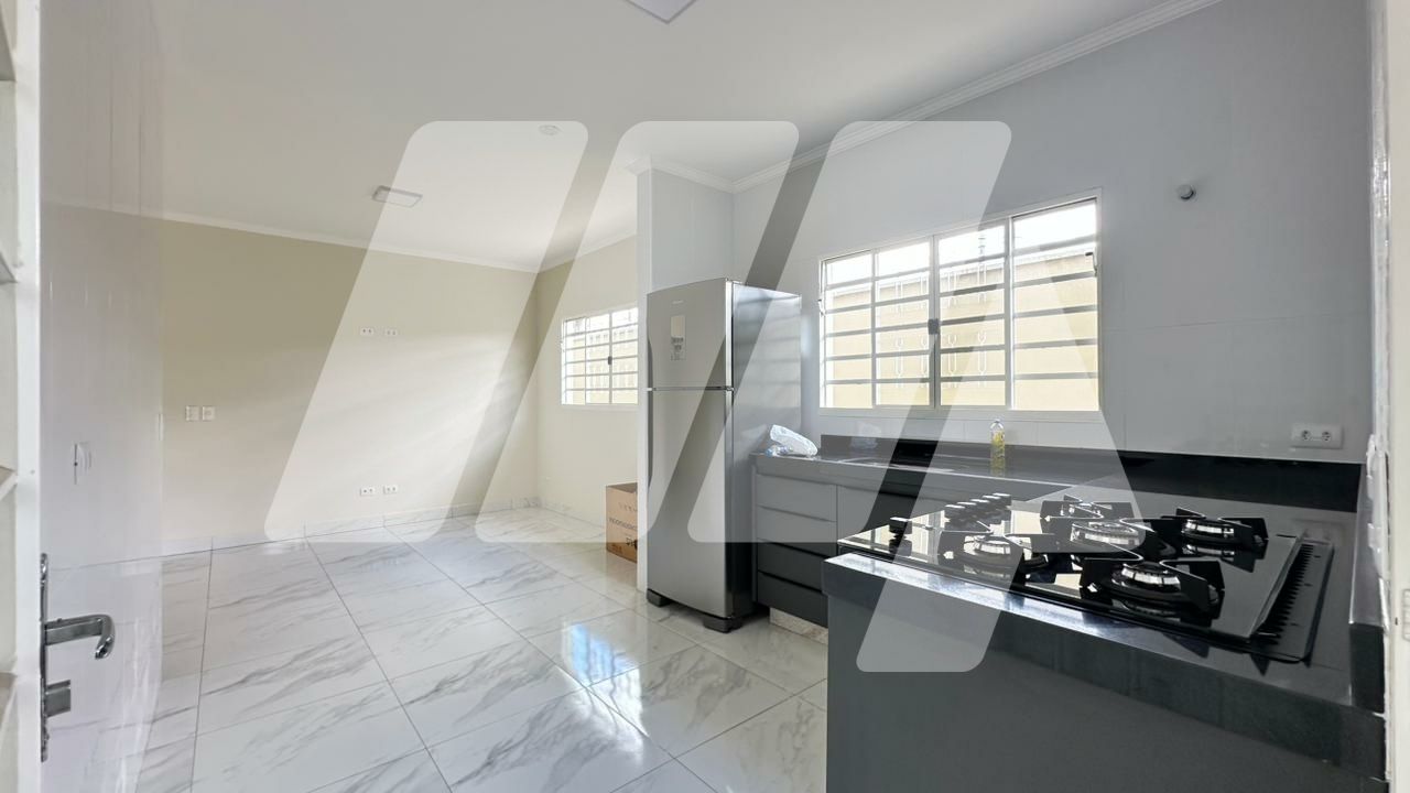Linda residência, novíssima, situada em local nobre da cidade, com 3 dormitórios, sendo 1 suíte, sala integrada com a cozinha, área de serviço com entrada independente, quintal, corredor lateral, garagem coberta e paralela para 2 carros.